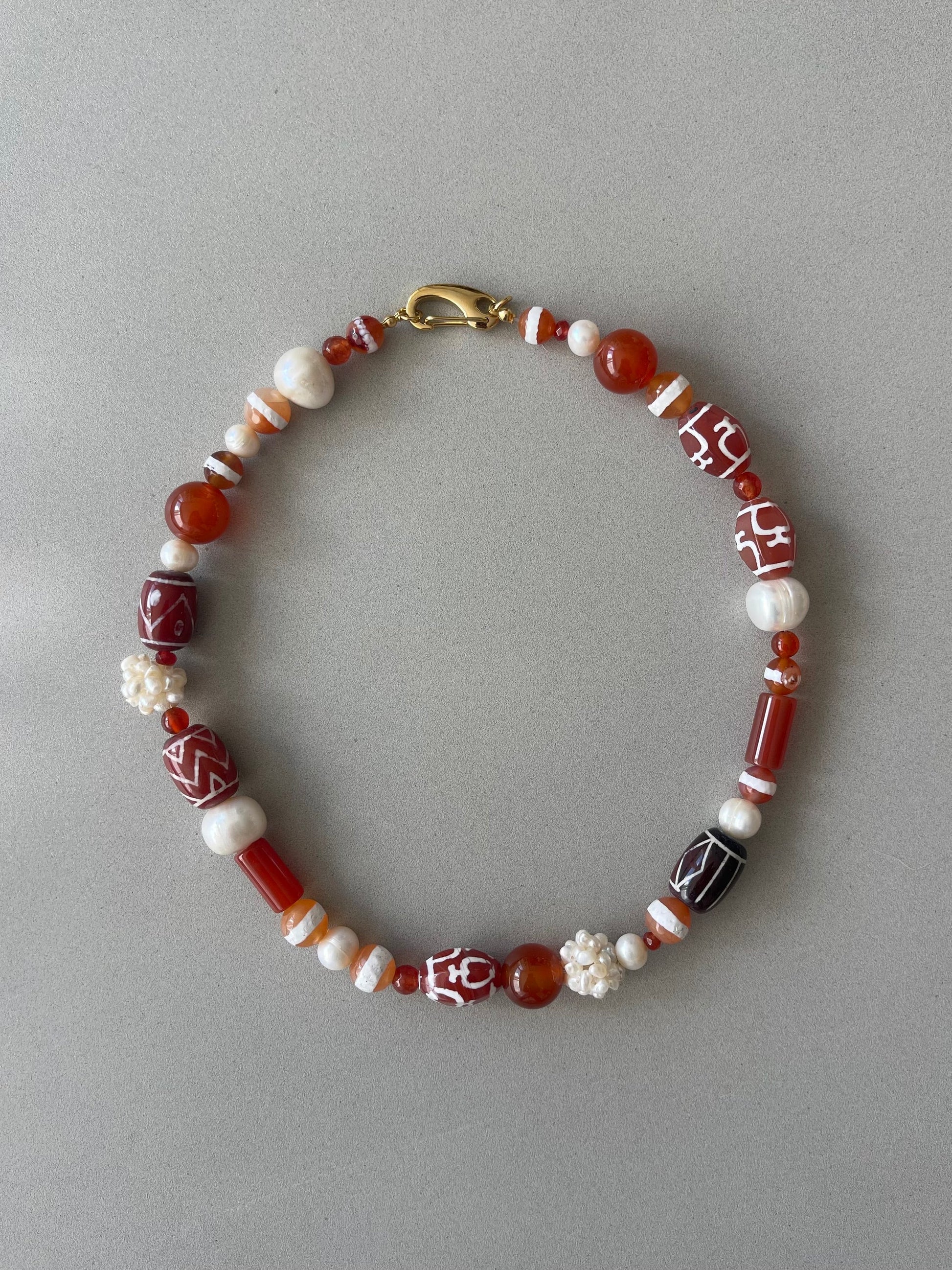 Necklace with natural freshwater pearls and natural stones. Some beads are painted.