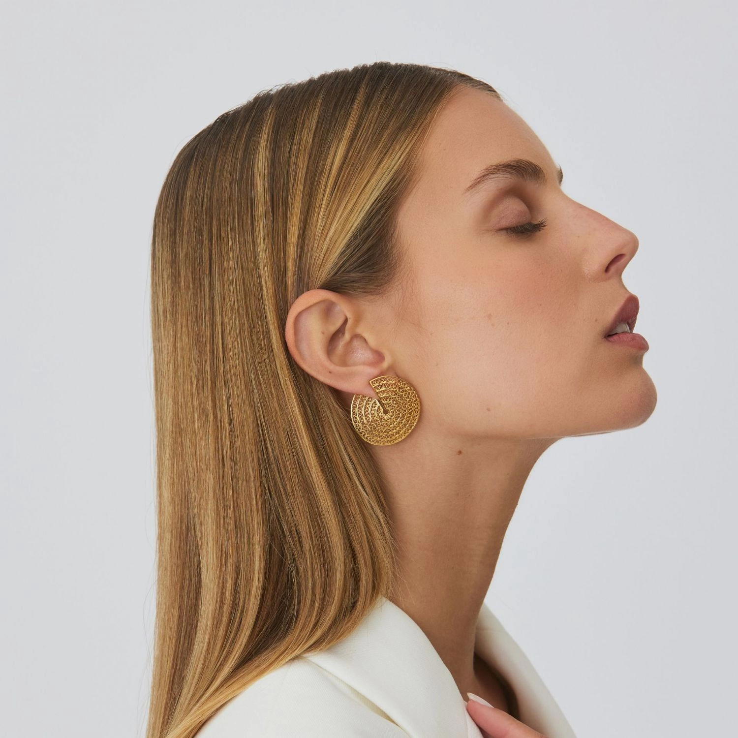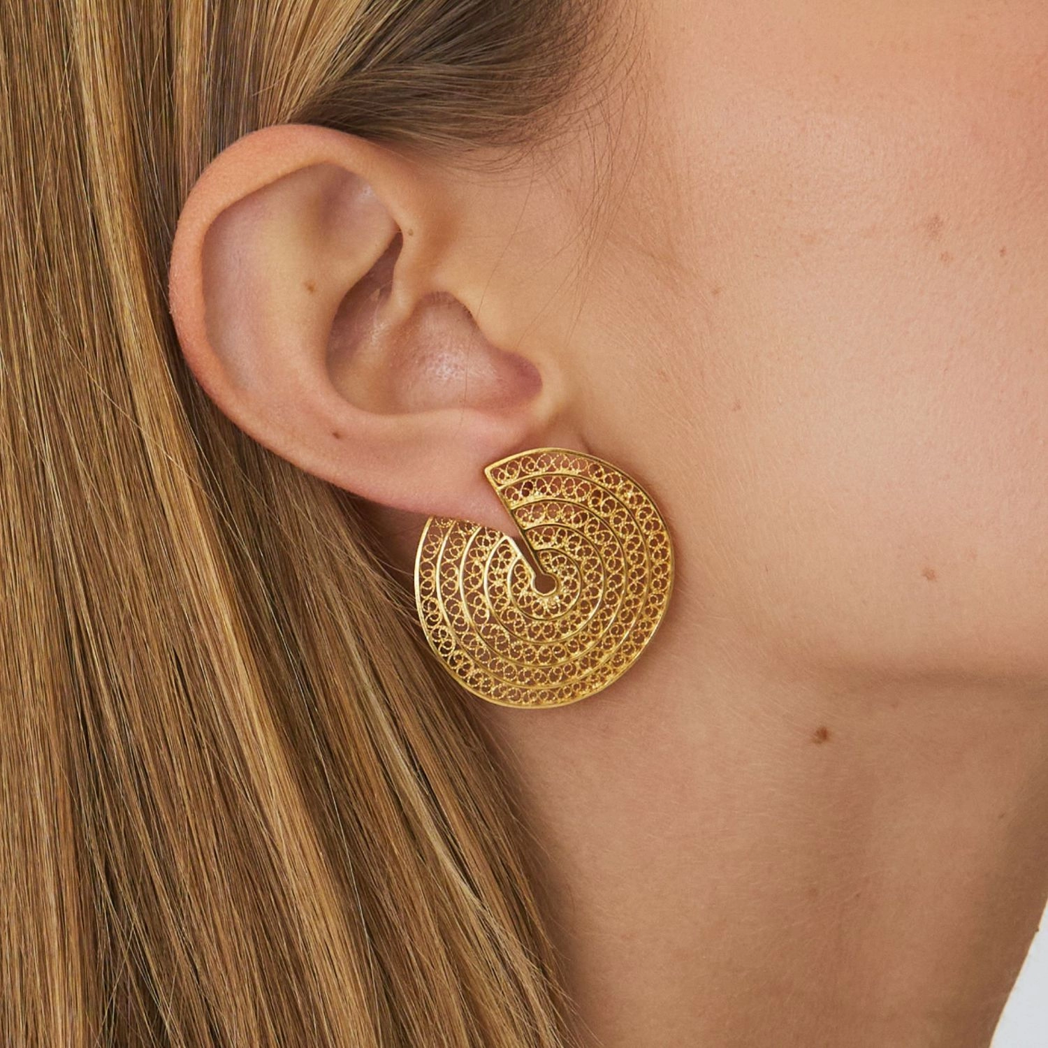 Gold plated silver earrings in filigree, part of the Formas Collection.